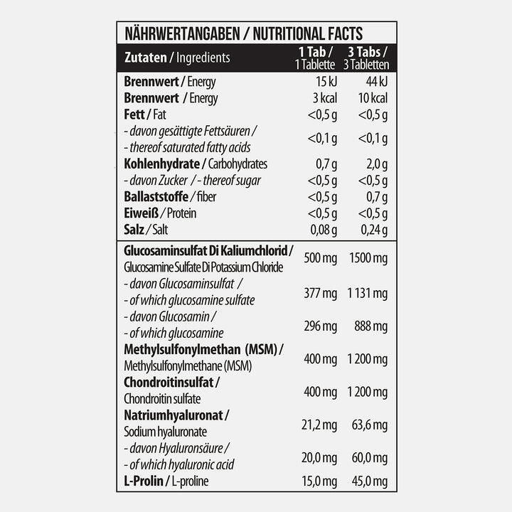 Glucosamin Chondroitin MSM + Hyaluron 90 Tabletten – MADE IN GERMANY