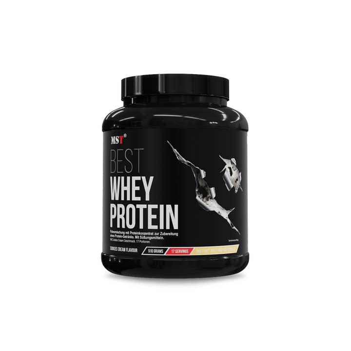 Scopri l'esperienza proteica definitiva con MST® BEST Whey Protein Cookies Cream 510 g, arricchito con DigeZyme® - una combinazione rinfrescante che fornisce al tuo corpo proteine di alta qualità ed enzimi digestivi.