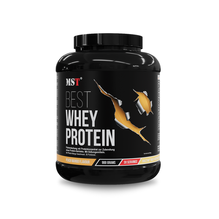 Discover the Ultimate Protein Experience with MST® BEST Whey Protein Peach Mango 900 g