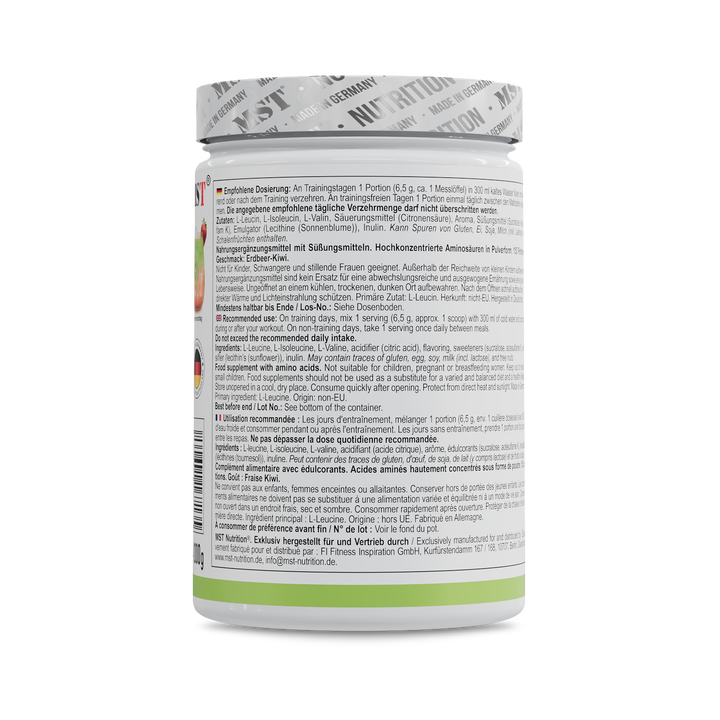 BCAA Zero von MST Nutrition liefert essentielle Aminosäuren im optimalen 2:1:1 Verhältnis aus L-Leucin, L-Isoleucin und L-Valin. Diese verzweigtkettigen Aminosäuren sind wichtige Bausteine von Proteinen, die zum Erhalt und Aufbau von Muskelmasse beitragen können – besonders bei intensiven...